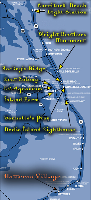 of Sir Walter's colony on Roanoke Island in the Outer Banks region near